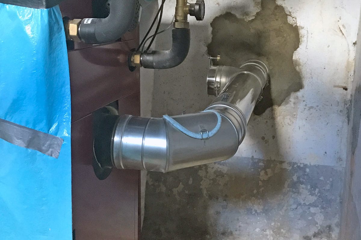 The difference between LAS and PP refurbishment lies in the system structure and the air routing. The LAS system has a double-walled design. The combustion air is drawn in via the outer annular gap, while the inner pipe discharges the flue gases. It is independent of room air and is often used with oil and gas firing systems.